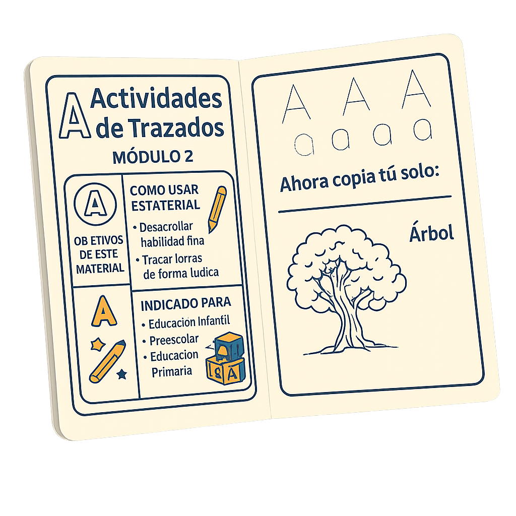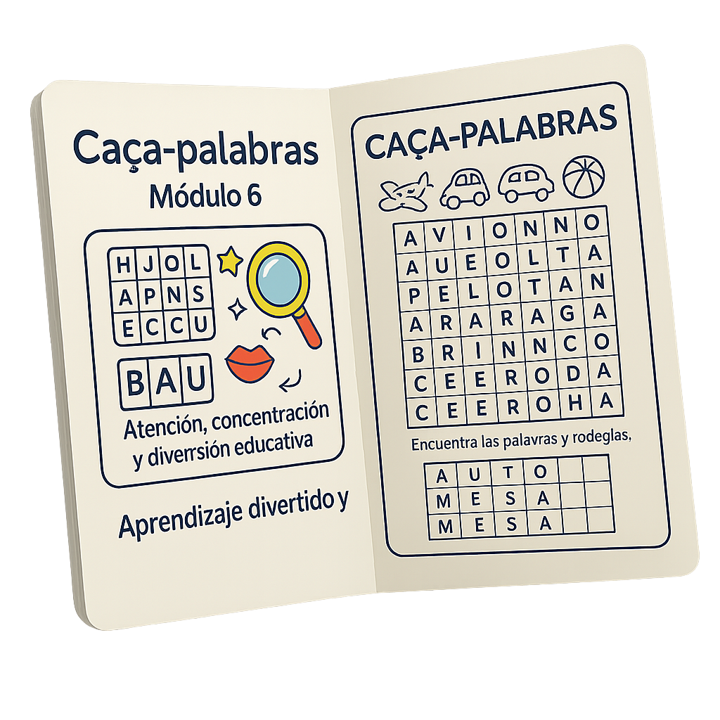 Material imprimible, repetible y diseñado especialmente para niños de 3 a 7 años.